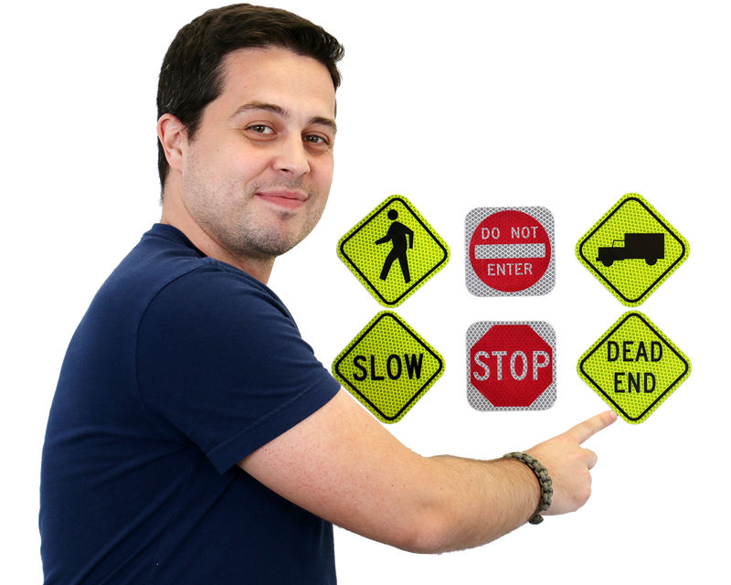 • • For slightly larger signs, search our traffic sign legend and you will find that most traditional highway signs are available in 12" x 12" sizes.