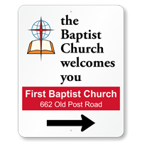 • • Directional Signs help visitors find your church. Let our live support team help you through your purchase.