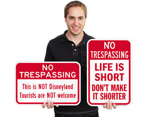 The " No Trespassing" sign is funny and visible from a good distance.
