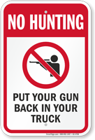 Privately owned land areas such as farms, ranches, animal parks, restricted public land, etc. can benefit from no hunting signs.