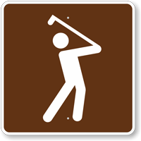 This Golfing Symbol Sign (RS-128) is referenced in MUTCD 2009. The purpose of recreation and cultural interest area signs is to guide road users to a general area and then to specific facilities or activities within the area.