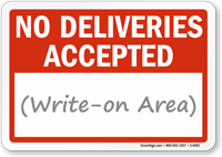 Let people down gently with a No Deliveries Accepted Sign. Signs help keep order at your workplace.