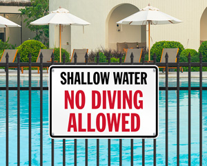 A. Our collection of “No Diving” signs has something to meet every requirement. We offer “No Diving” signs in English, Spanish, and English+Spanish (bilingual signs). You may choose from standard and designer options, or maybe create a custom sign in no time!