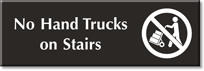 Prevent tipping of materials and consequential injuries by prohibiting the use of hand trucks on stairs with the help of this sign.