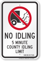 Most no idling ordinances allow 3–5 minutes of idling before a violation occurs, though exact limits vary by location. Some school and hospital zones reduce this to 1–2 minutes. In cold or hot weather, exceptions may allow longer idling for temperature control. Signs like the 3-minute idling law sign help communicate clear local regulations.