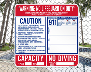 Bilingual signs break linguistic barriers and reach out to people who understand different languages. We offer “No Lifeguard on Duty” signs in English and Spanish languages to reach out to a broader audience. You should go for a bilingual sign if pool instructions are frequently translated into Spanish or if there is a substantial non-English speaking audience (like Hispanics) who must be aware that the lifeguard is not on duty.