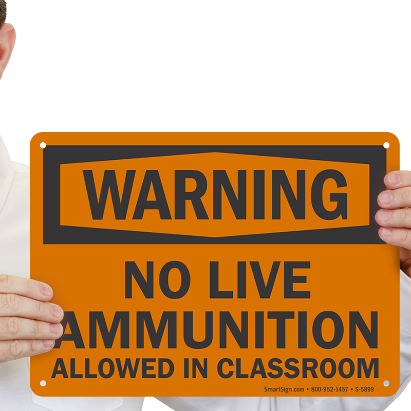 Live Ammunition inside a classroom can put students, teachers, and visitors at risk. Post this sign in your school premises to enforce your rule and maintain safety.