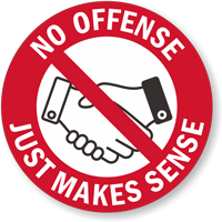 2" Circle Hard Hat Sticker: No Offense, Just Makes Sense - No Handshake (HH-0630)