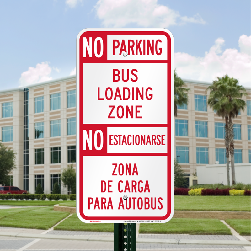 Make sure the bus loading zone is always clear. Bilingual No Parking Sign effectively prevents any one from parking in the area.
