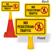 Heavy traffic areas are no place for pedestrians. Protect pedestrians and prevent accidents by clearly stating areas in which pedestrians are not allowed. Whether it is a dangerous road or factory, these signs alert pedestrians to where they should not go. Post No Pedestrian Traffic signs to direct pedestrians to safer areas.