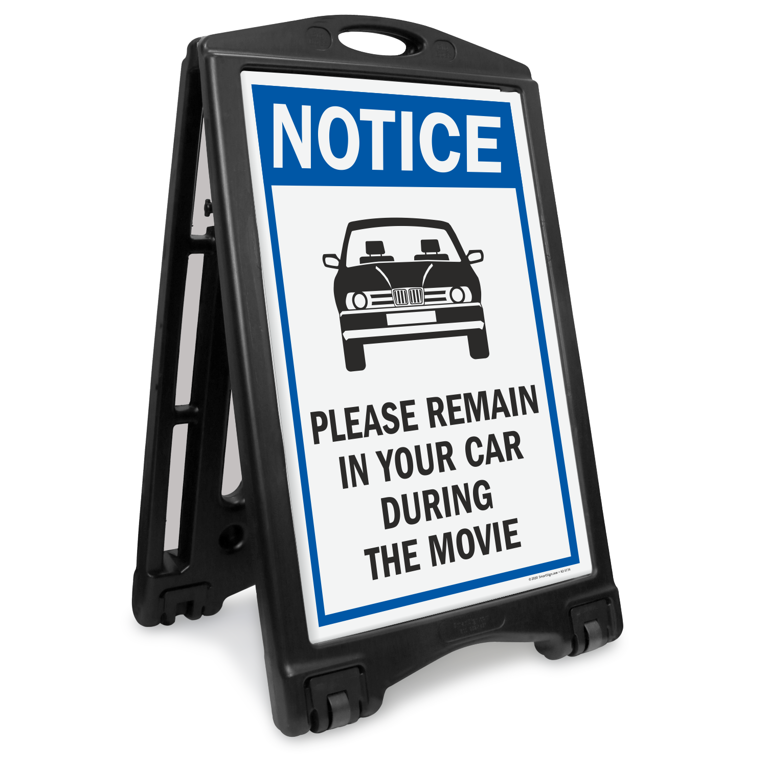 Portable Sign and Base: NOTICE: Please Remain in Your Car During the Movie