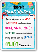Of course. Our collection of Personalized Pool Rules Signs features designs with pre-printed rules as well as one that lets you add your own rules. When you select this template, you will be able to specify your rules in the “Your Rules” section and also choose your sign color, add your family name, and heading.