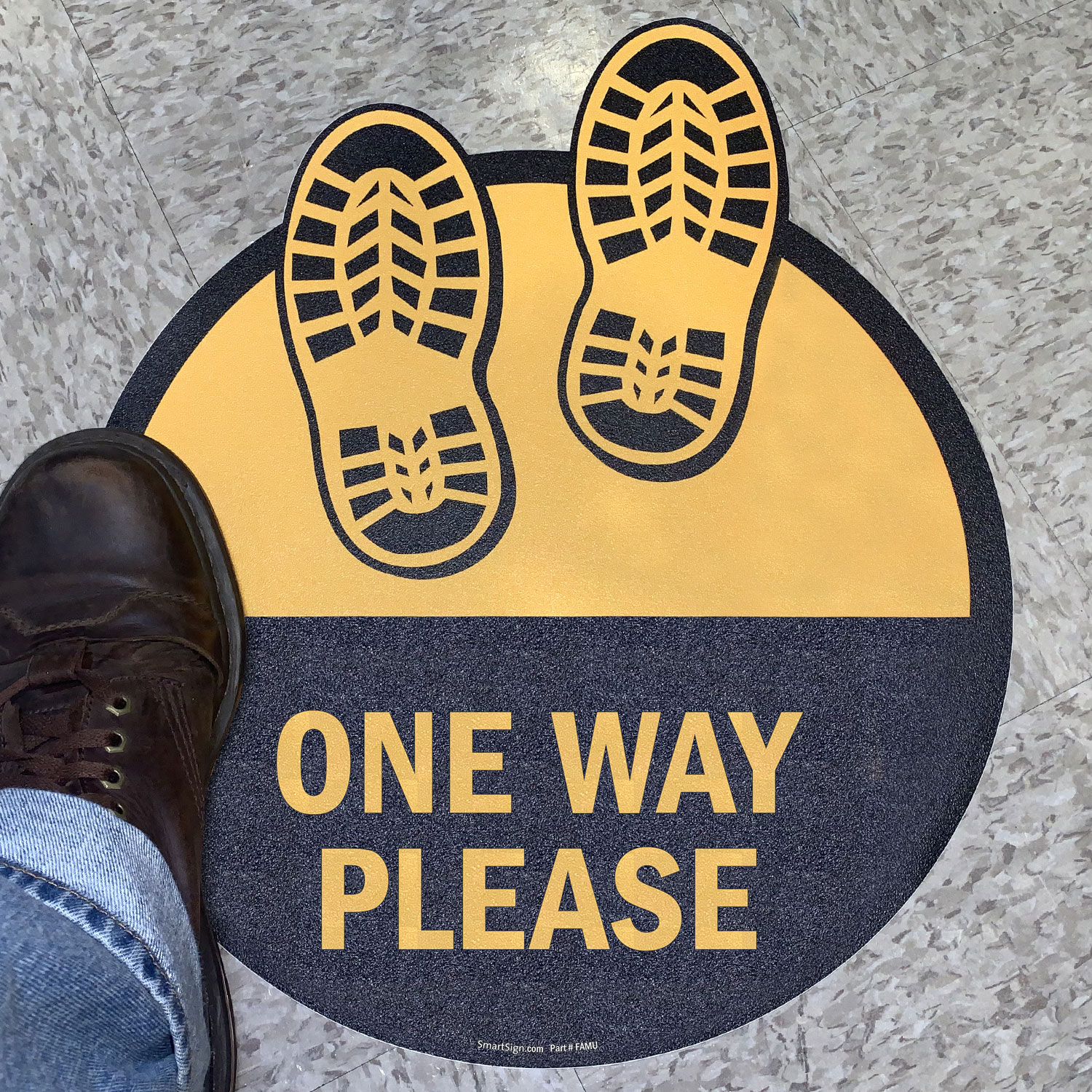 Identify one-ways with our hard-to-miss floor sign that comes with permanent adhesive backing and stays in place once applied.
