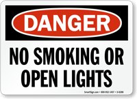 OSHA requires no smoking signs near open flames, flammable liquids or gases, and in areas where smoking presents a fire or explosion risk, and our OSHA no smoking signs are designed for placement on gas tankers, fuel storage areas, chemical storage rooms, and anywhere smoking is prohibited near hazardous materials.