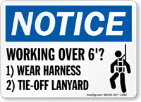Remind your employees that their tasks over six feet are "high" risk. This sign provides a universally understood graphic and details the safety measures workers should take before ascending.