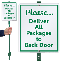 To make sure your packages and deliveries arrive safely it’s important for the delivery drivers to know where they should leave your packages. We offer a full line of package delivery signs in all sizes and styles to ensure your packages are never lost or damaged.