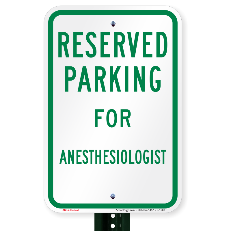 Prevent unauthorized parking in the space reserved for Anesthesiologist. Install this Physician Parking sign to save the spot.