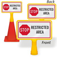 Size: 8" x 15" Material type: Reflective “No-Tip” Traffic Cone Sign - Two Sides Printed