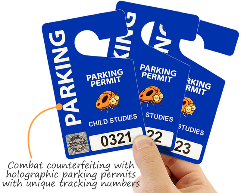 • • Holograms are embedded within the parking permit hang tags, so they can't be removed or reused.