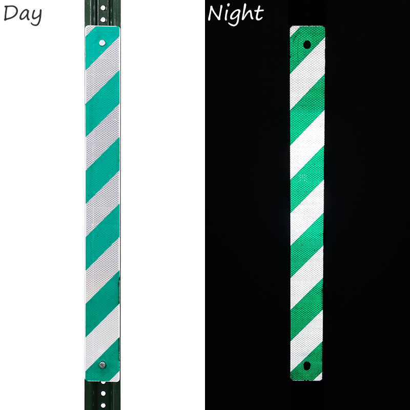 Green and white combine to make a reflective, hard-to-miss post panel to help you draw attention to your signs.