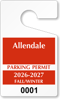 A standard-size parking hang tag is the most common and popular permit size. It offers a perfect balance between being large enough for security to see clearly, yet small enough that it doesn't overly obstruct the driver's view. See our full collection of standard parking tags.