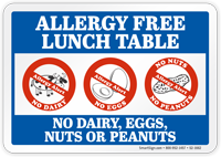 Our peanut allergy signs clearly communicate peanut-free zones, peanut allergy warnings, and food handling cautions for schools, cafeterias, restaurants, food processing facilities, and healthcare settings in stock and custom formats in rigid plastic, aluminum, adhesive vinyl, and magnetic materials.