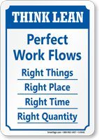 Think Lean Sign: Perfect Work Flows - Right Things, Right Place, Right Time, Right Quantity (S-9342)