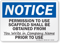 OSHA Notice Sign: Permission To Use Scaffold Shall Be Obtained Prior To Use (S2-2118)