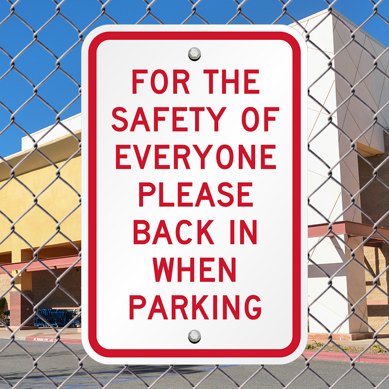 Post this sign in your property to request motorists to back into a parking space to make pulling out of the parking safe and easy.