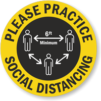 2" Circle Hard Hat Sticker: Please Practice Social Distancing (HH-0611)