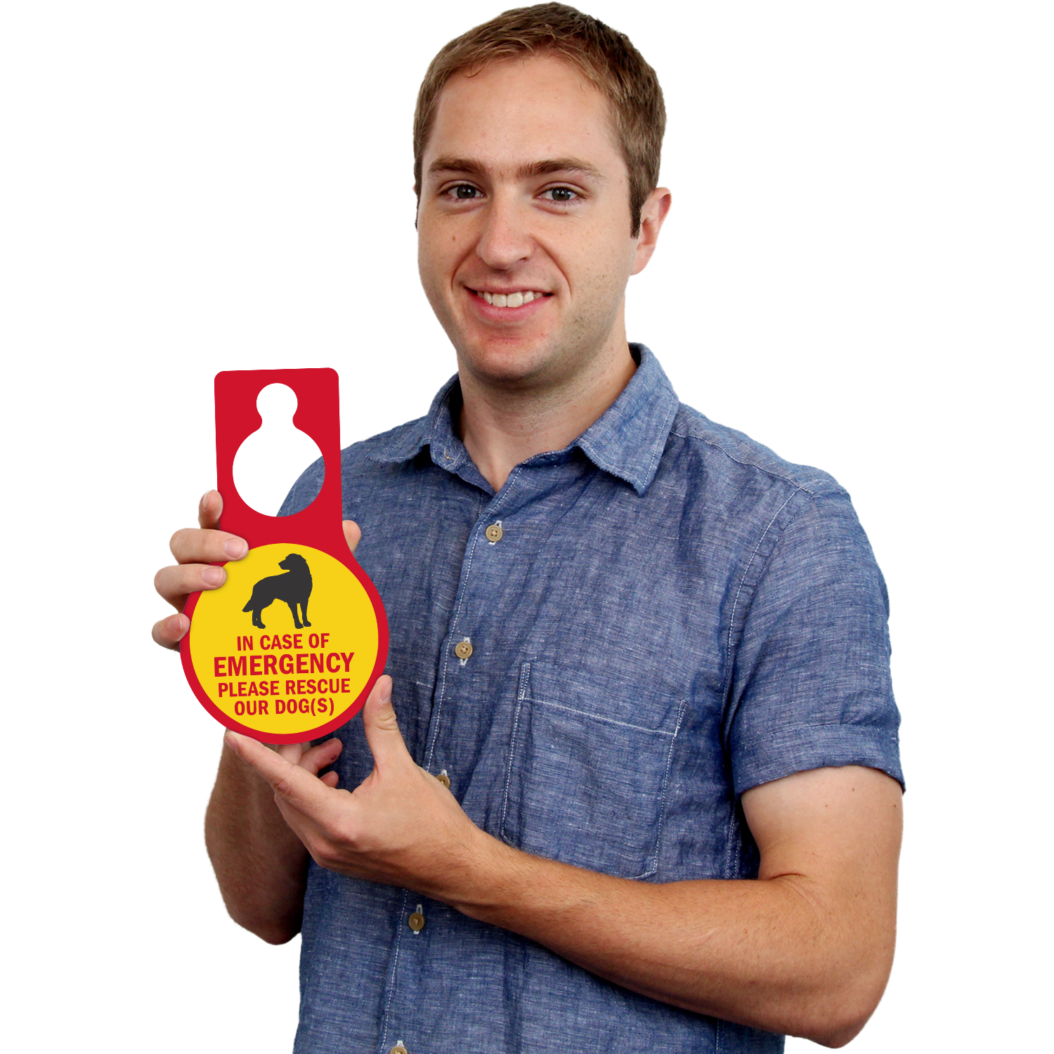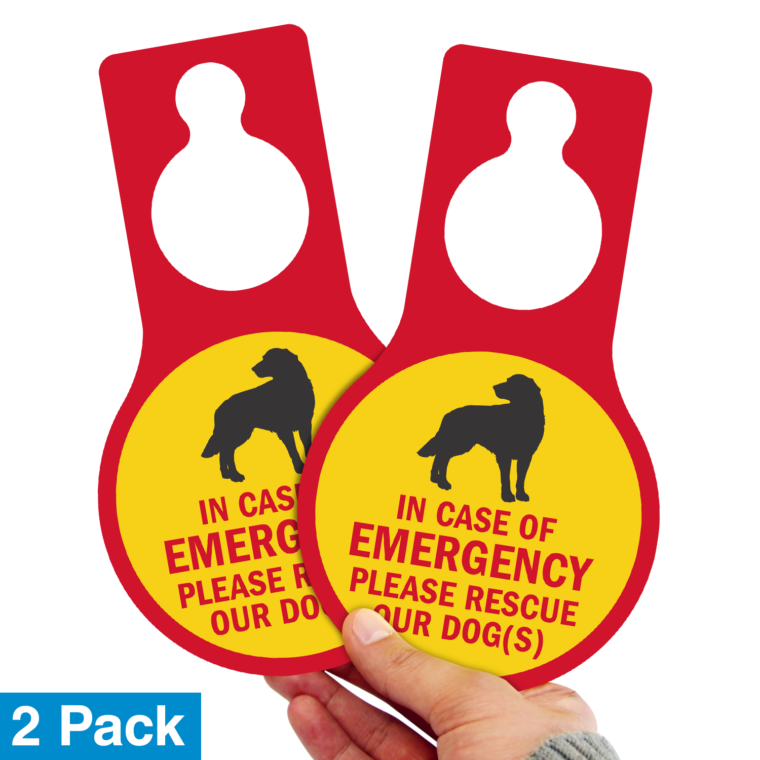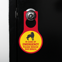 Pear Shaped Plastic Door Hang Tag: In Case Of Emergency Please Rescue Our Dog(S) (with Dog Symbol) (TG-1410)