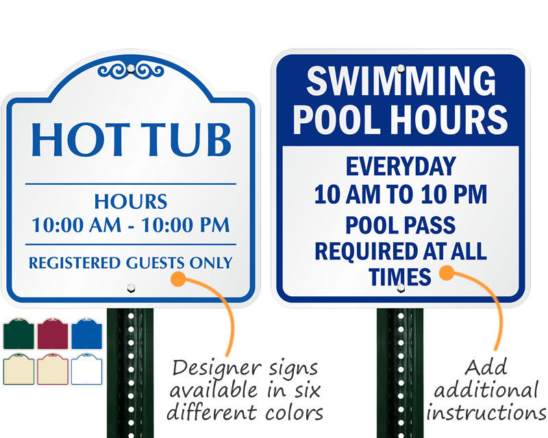 • • Create your own custom pool hours sign in no time at all. Our custom wizard is fast and fun to use!