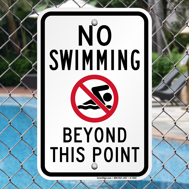 No Swimming Sign: No Swimming, Beyond This Point With Graphic (K-7502)