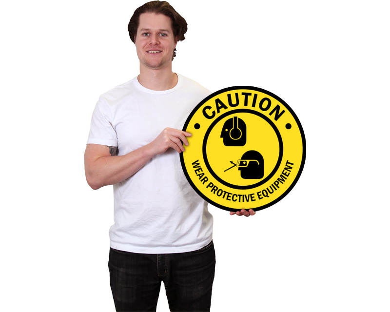 Floor signs are our most popular way to convey which type of Personal Protective Equipment is required.