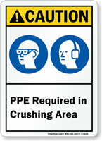 Ensure that everyone wear PPE in crushing area. ANSI Caution PPE Sign brings about compliance at all times.