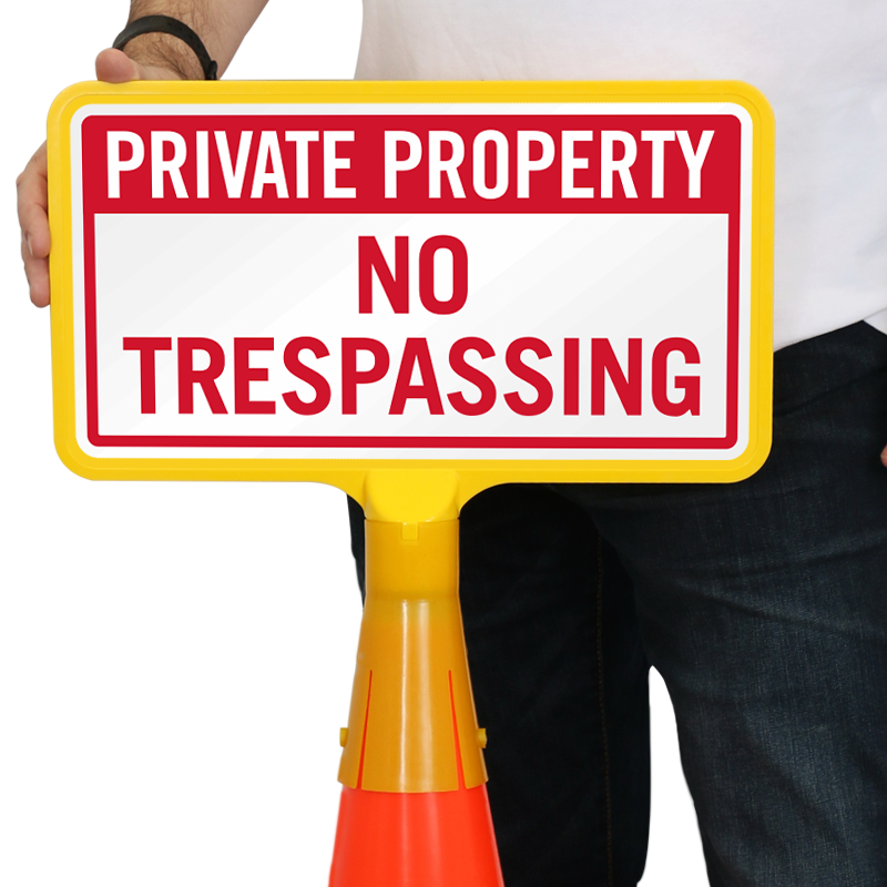 Use this prominent highly-visible no-tip, portable Traffic Cone Sign to stop trespassers from entering your private property.