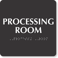 Identify the processing room in your facility with the help of this ADA approved Braille sign. Take a pick from 15 different color options!