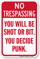 I like that it's reflective. It has more impact than the no trespassing signs at the entrance. They ignore those, but 200 yds in they usually turn around at these.