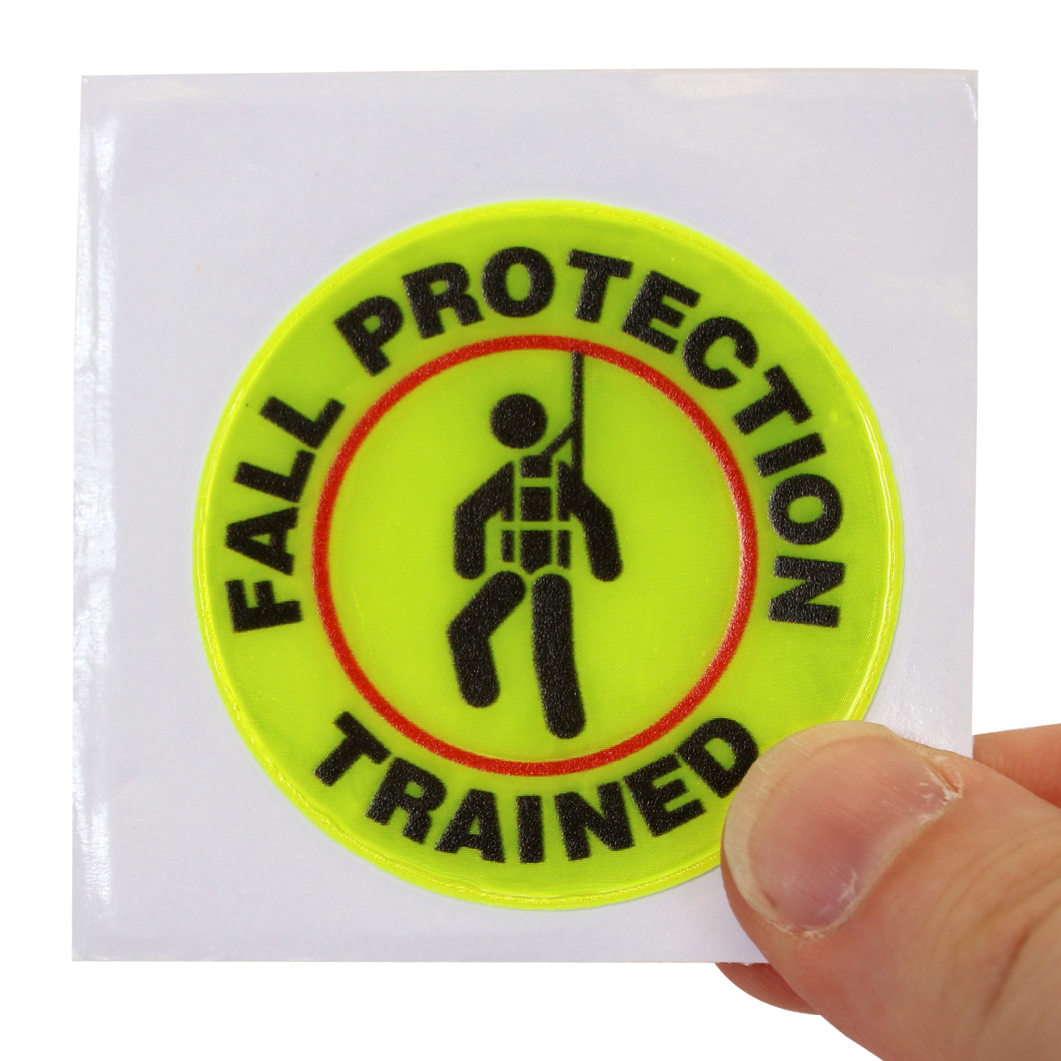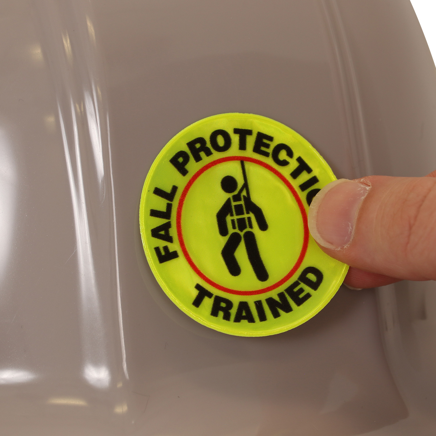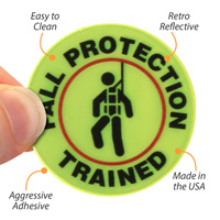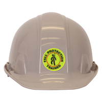 Make everyone know who is trained in fall protection. Use a "FALL PROTECTION TRAINED" Hard hat decals that are proven to last.