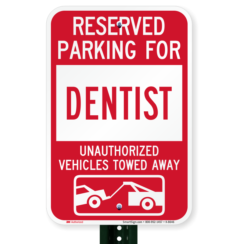 Save a spot for the dentist! This red and white sign with a tow away graphic will stand out to drivers and warn unauthorized vehicles of their risk of being towed.