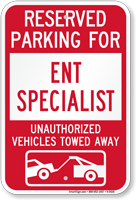 Are you the ENT Specialist? If so, park here! This red and white sign with a tow away graphic will stand out to drivers and warn unauthorized vehicles of their risk of being towed.