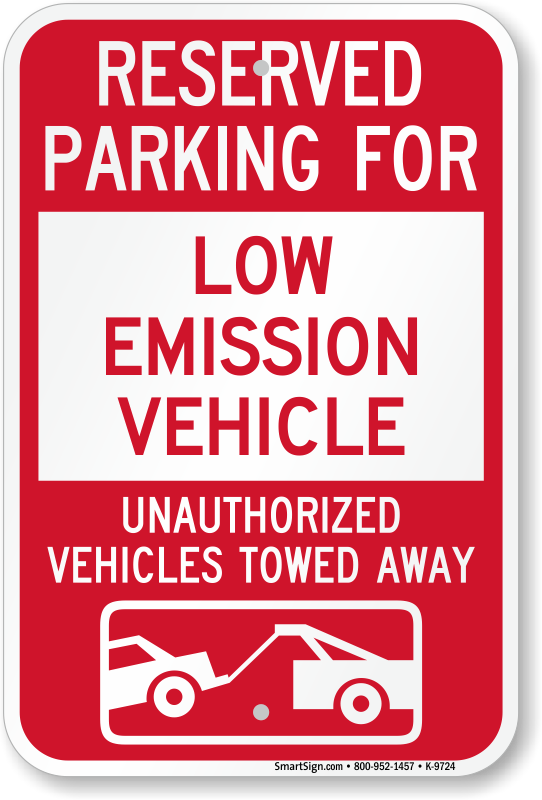Parking Lot Sign: Reserved Parking For Low Emission Vehicle Unauthorized Vehicles Towed Away (With Tow Away Graphic) K-9724 Learn More...