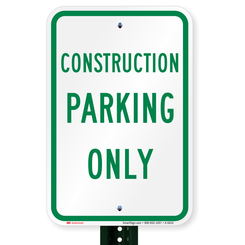 These signs can help organize your parking lot by specifying areas for construction parking only.