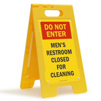 Unfold a simple floor sign to let everyone know the restroom is closed. Lightweight and portable Restroom Closed For Cleaning Signs are easy to store when you don't need them.