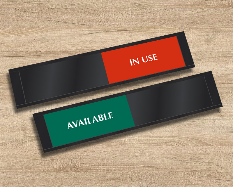 Our high-quality Room In-Use Signs offer clear privacy control through smooth sliding panels. These versatile door occupancy signs help signal availability in offices, clinics, conference rooms, and shared spaces. Choose from durable styles or create custom sliding signs to match your facility.
