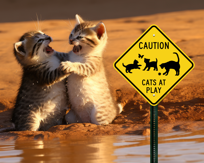 Diamond Caution Sign : Caution, Cats at Play with Symbols
