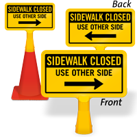 Size: 8" x 15" Material type: Reflective “No-Tip” Traffic Cone Sign - Two Sides Printed