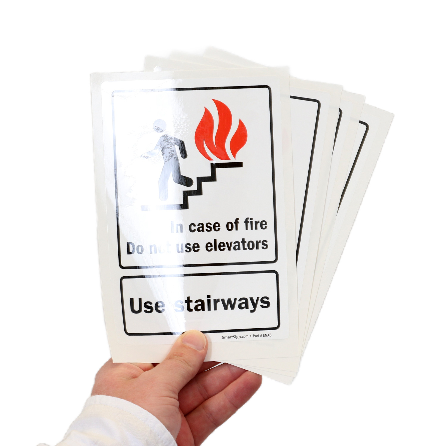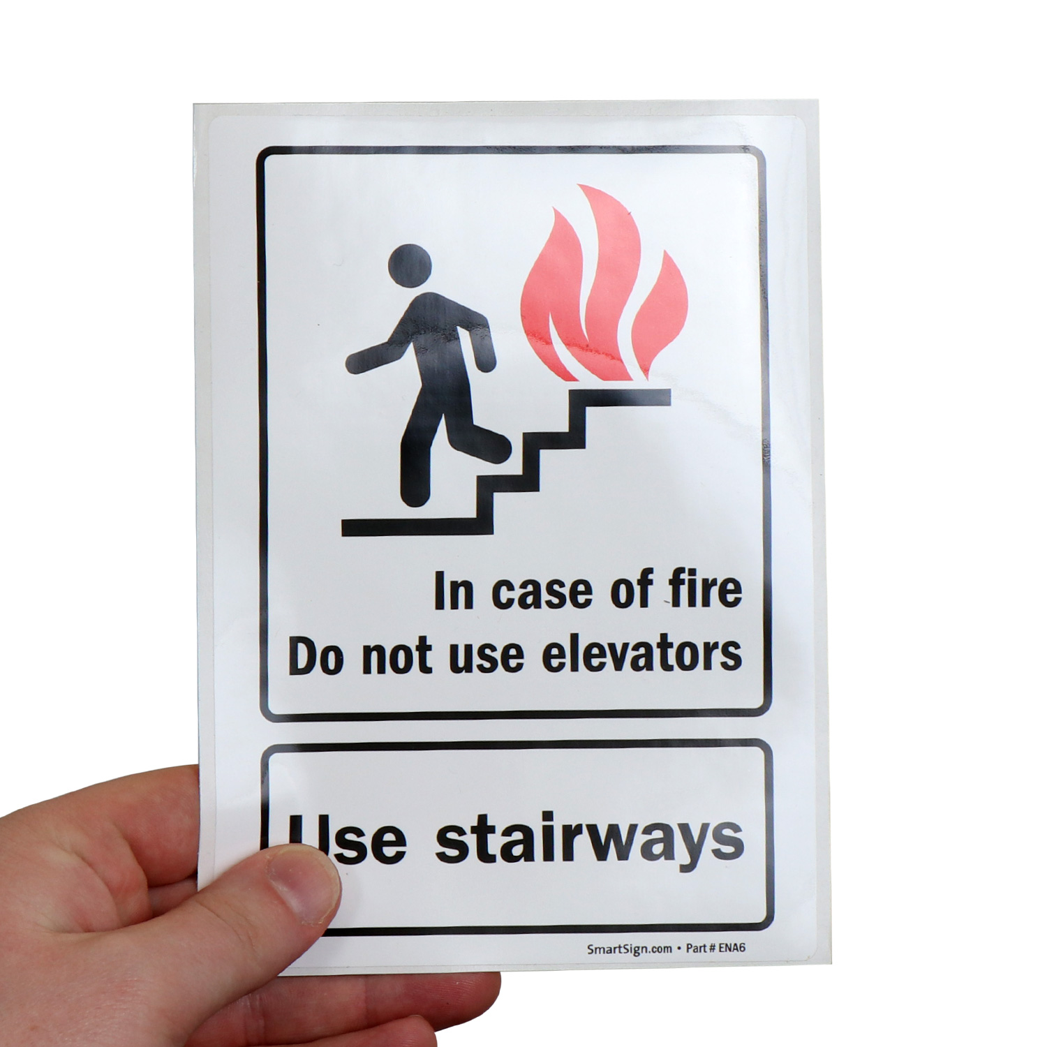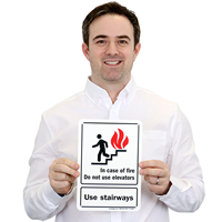 This fire and emergency sign is essential to keep occupants from using elevators when they may be risky. Graphic on the sign breaks language barrier and communicates your message to a wider audience.