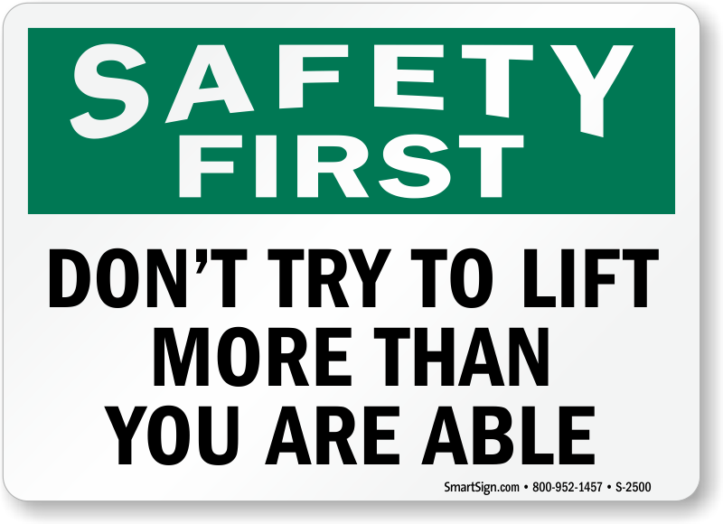 Make sure that safety comes first. Use a "don't try to lift more than you are able" sign.