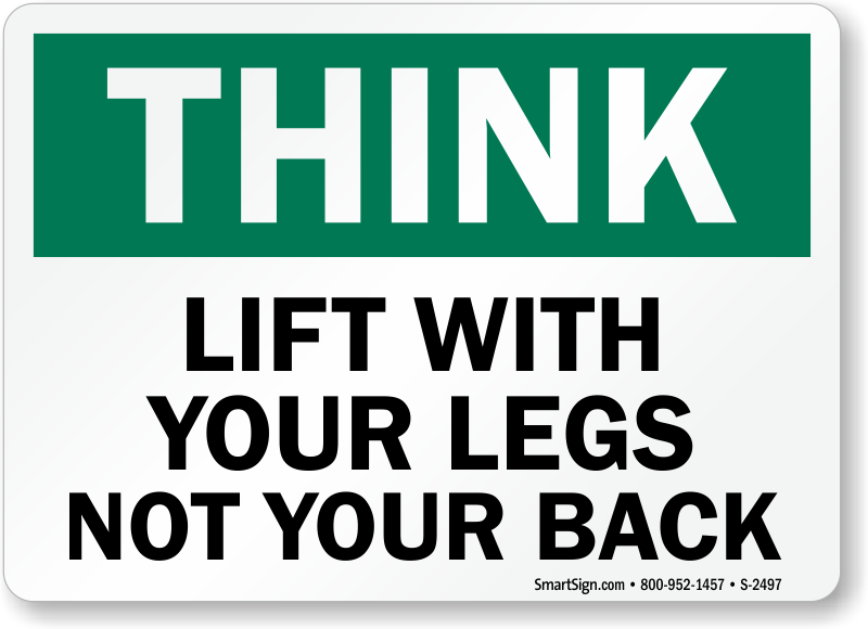 OSHA Think Sign: Lift With Your Legs, Not Your Back